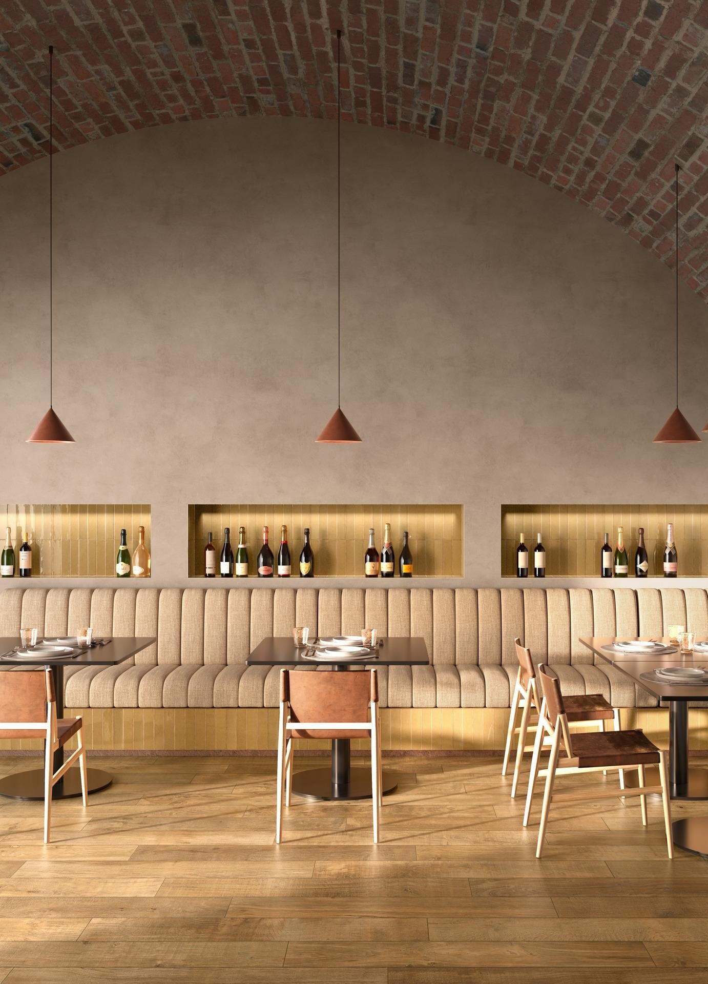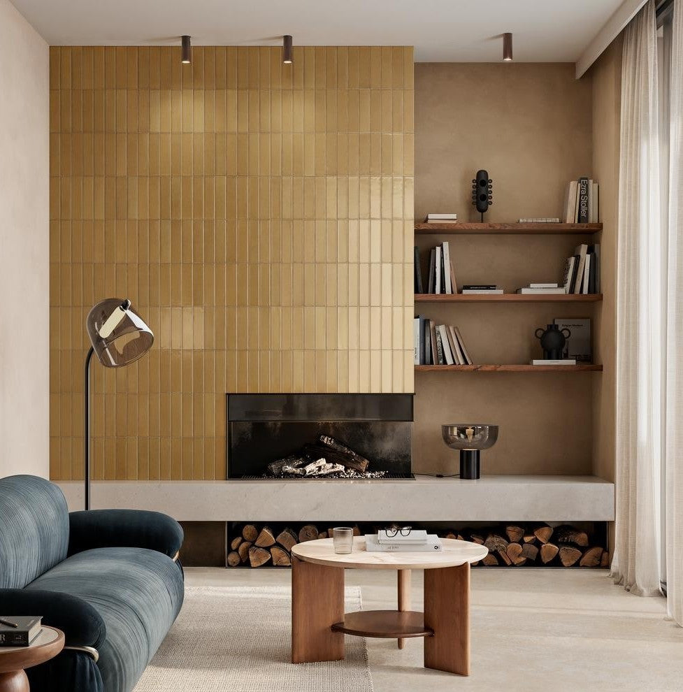 Mid reinterprets the revival of modern mid-century interiors, capturing vintage craftsmanship through innovative details. Each piece is unique thanks to glass grit and a glossy glaze, rich in nuanced tones and edge burnishing. The collection celebrates simplicity and sophistication, making it ideal for feature walls, as well as furniture elements and facades. With its harmonious colour palette and retro-modern character, Mid brings warmth and authenticity to contemporary spaces.