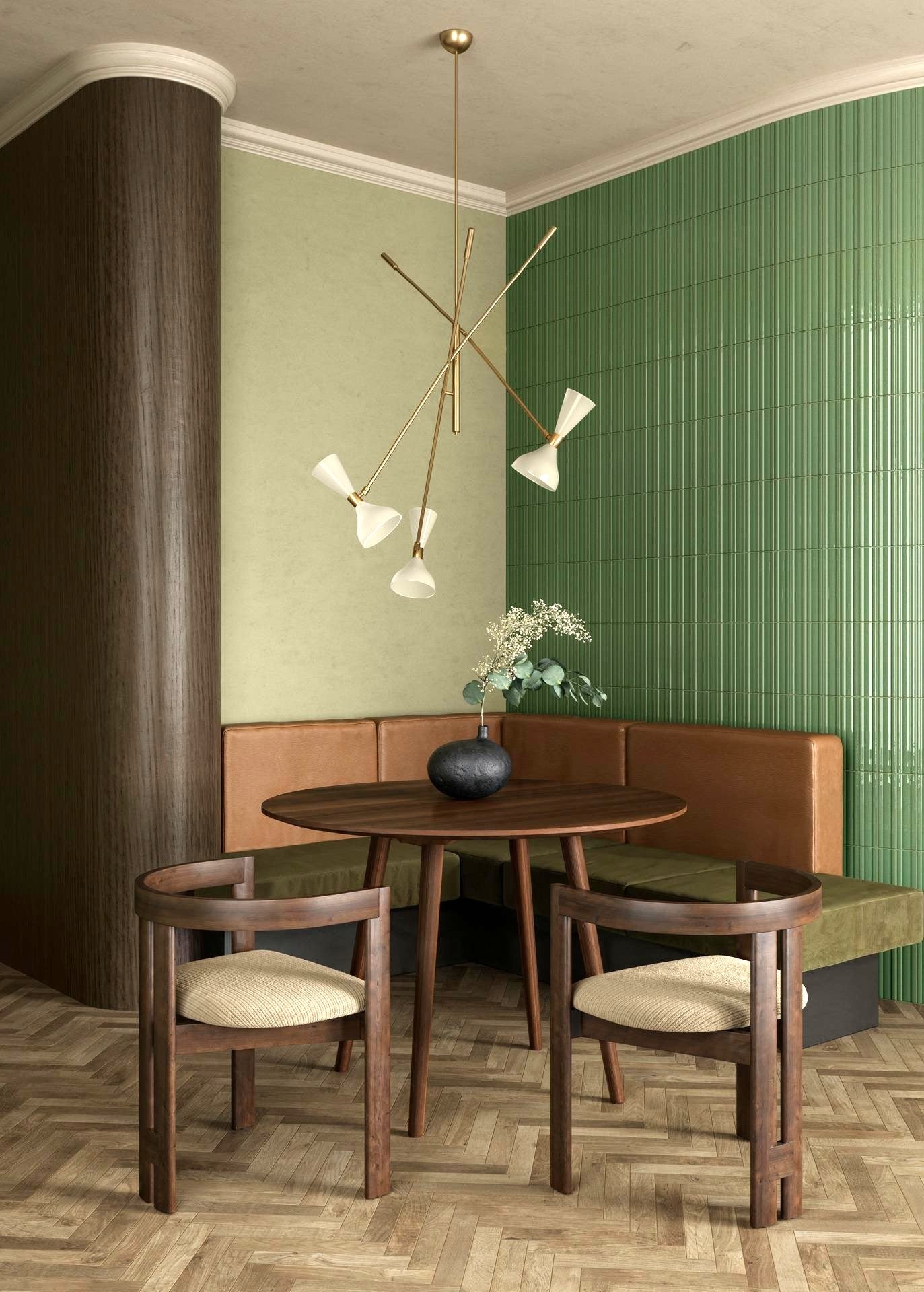 Mid reinterprets the revival of modern mid-century interiors, capturing vintage craftsmanship through innovative details. Each piece is unique thanks to glass grit and a glossy glaze, rich in nuanced tones and edge burnishing. The collection celebrates simplicity and sophistication, making it ideal for feature walls, as well as furniture elements and facades. With its harmonious colour palette and retro-modern character, Mid brings warmth and authenticity to contemporary spaces.