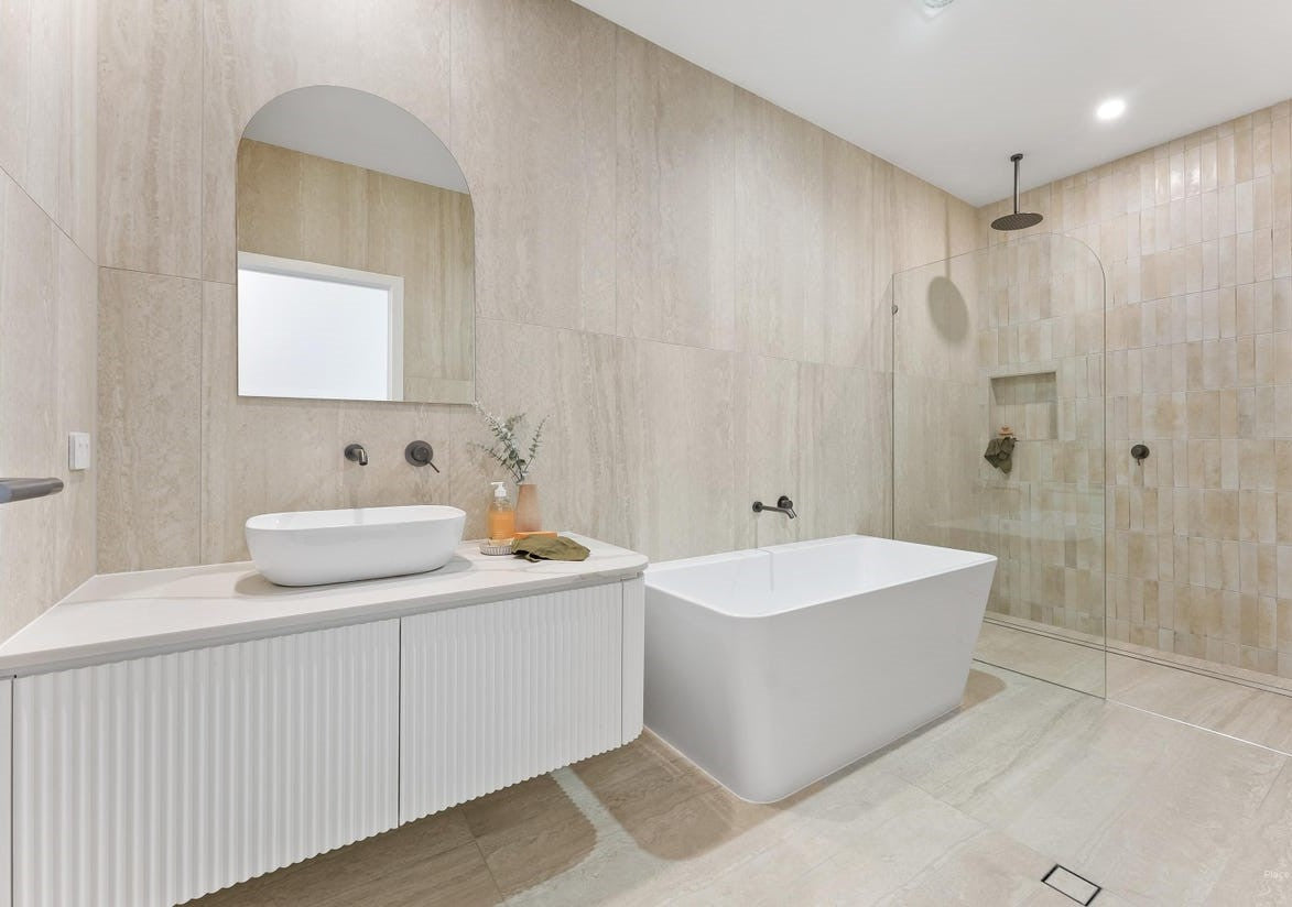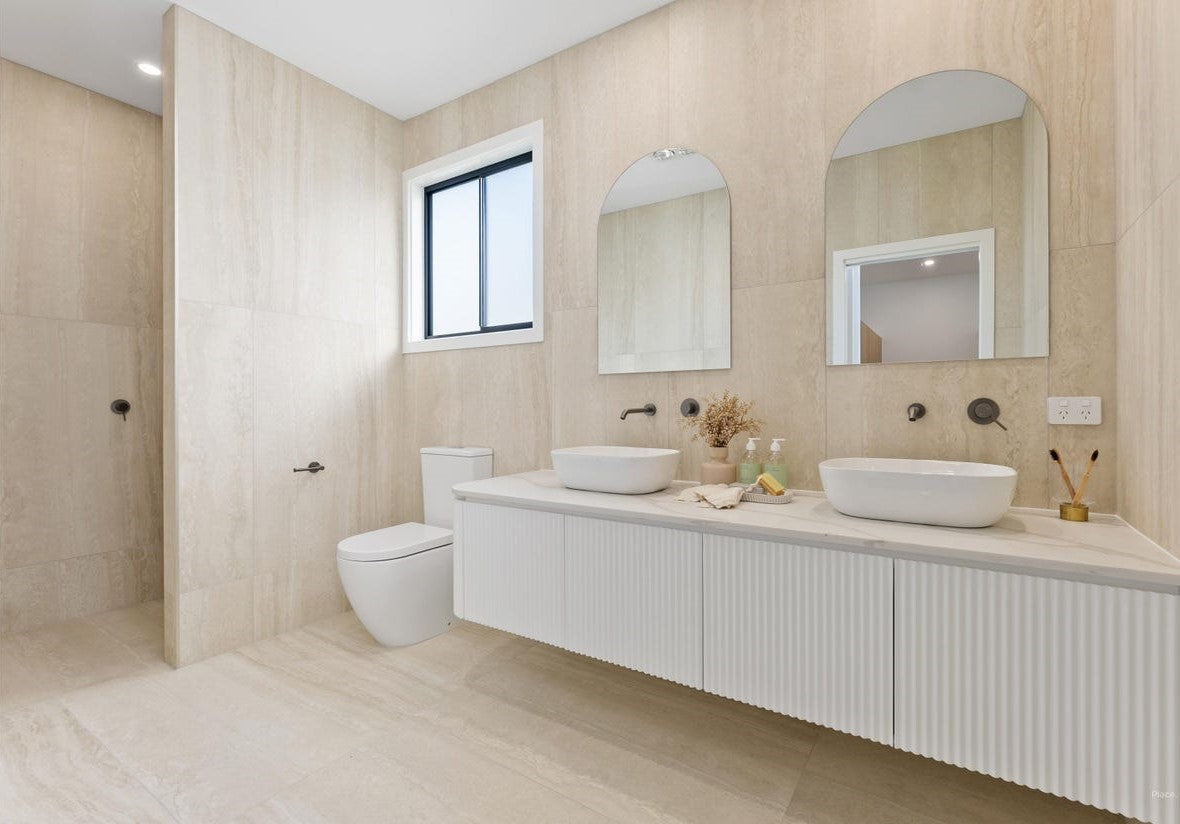 A much loved, classic vein-cut travertine look porcelain tile with warm, earthy tones and slight pitting on the surface which closely mimics natural stone.