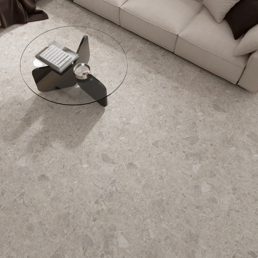 Allure is a collection of porcelain tiles that are designed to mimic the appearance of natural stone, specifically the traditional Italian Ceppo di Gré stone, a sedimentary rock characterized by its distinct texture and colour variations.